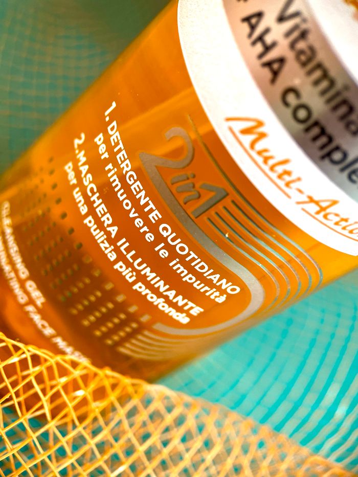 Ha diverse linee viso, tra cui appunto questa alla vitamina C. Nella linea, oltre al detergente di cui ti parlo oggi, troviamo anche l’olio gel struccante, il siero concentrato illuminante e la crema viso illuminante SPF 15.